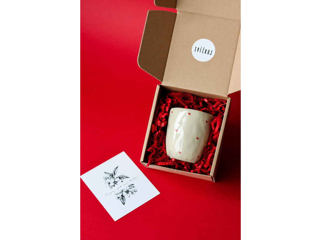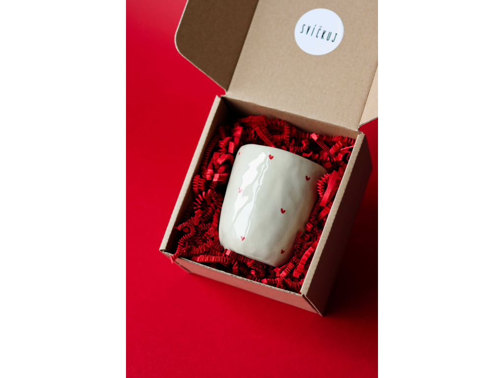Co v sadě najdete: 🖤Sójová svíčka v keramickém hrníčku s černými srdíčky– elegantní a nadčasová ❤️Sójová svíčka v keramickém hrníčku s červenými srdíčky– vášnivá a romantická