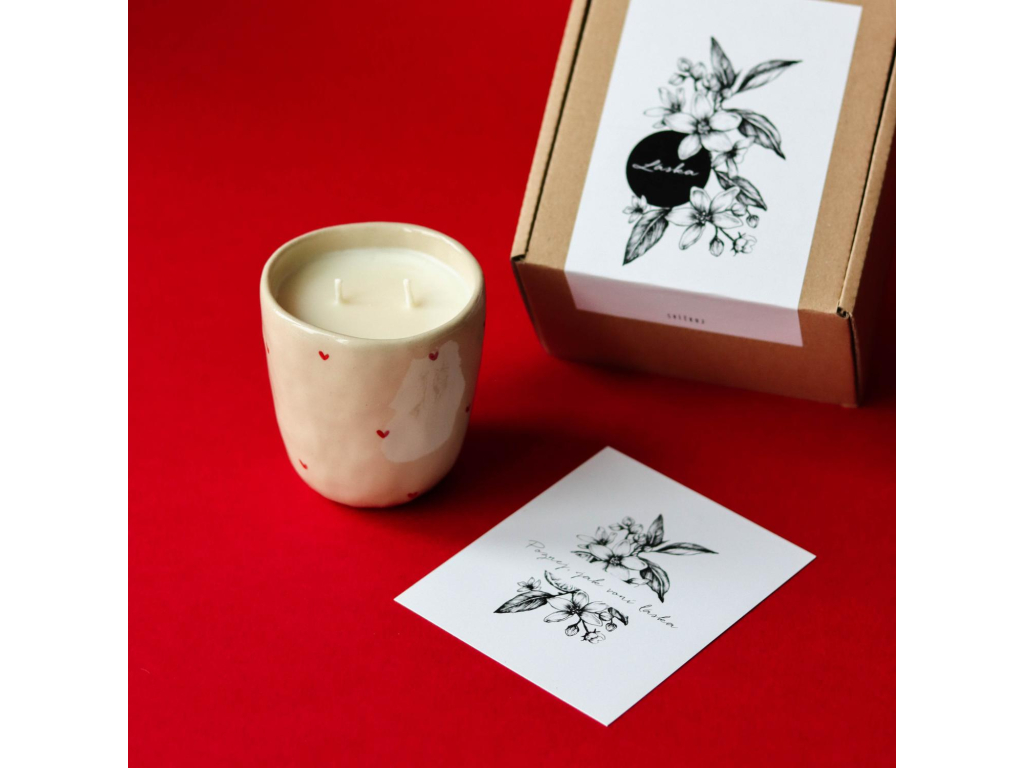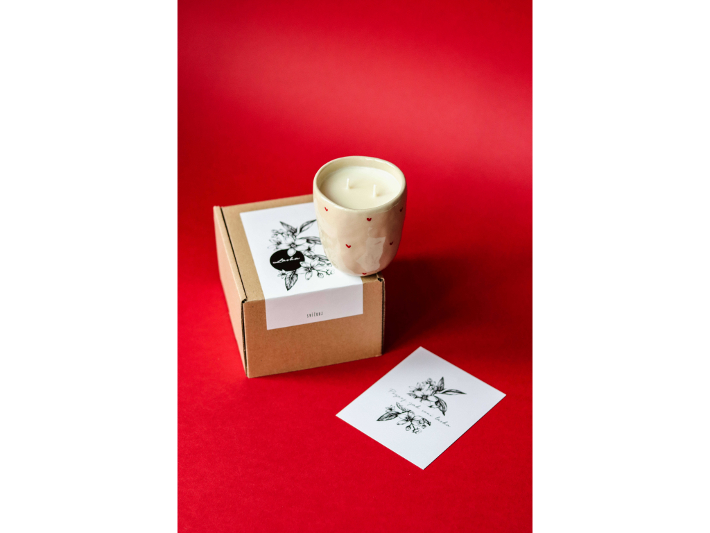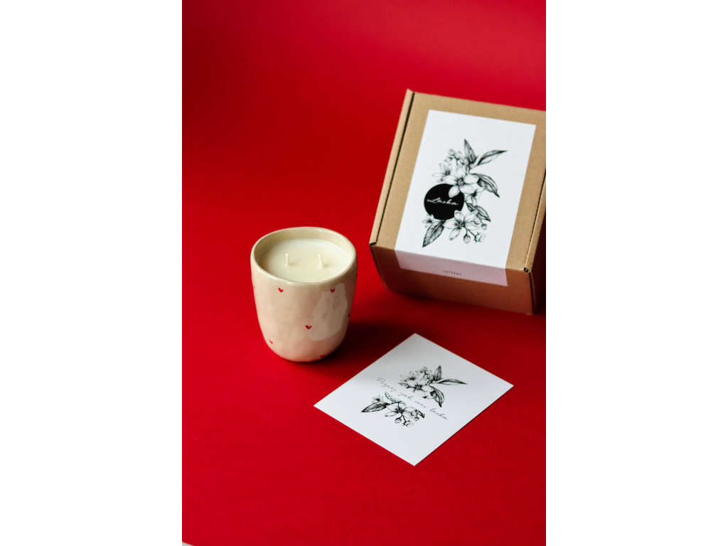 Obě svíčky voní naší oblíbenou vůníLáska– něžnou harmoniíjasmínu a pomeranče, která naplní váš domov romantikou. Keramické hrníčky z brněnského ateliéruEngobavám po dohoření zůstanou jako krásná připomínka vašeho společného večera – jeden pro ni, jeden pro něj.