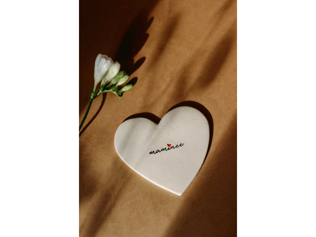 - ručně dělaný keramický podtácek ve tvaru srdce s nápisem Mamince od značky Engoba