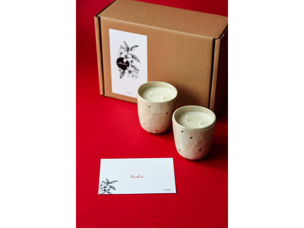 Hledáte dárek, který potěší všechny smysly a zanechá trvalou vzpomínku? Naše dárková sada Láska je tou pravou volbou pro každého, komu chcete říct:Záleží mi na tobě. V elegantním dárkovém balení najdetesójovou svíčku ukrytou v ručně vyrobeném keramickém hrníčku se srdíčkyz brněnského ateliéruEngoba. Svíčka voní naší oblíbenou vůníLáska, něžnou kombinacíjasmínu a pomeranče, která uklidňuje mysl a naplňuje prostor romantickou atmosférou. Po dohoření svíčky zůstane obdarovanému krásný hrníček, který bude připomínat vaši pozornost při každé ranní kávě nebo večerním čaji.